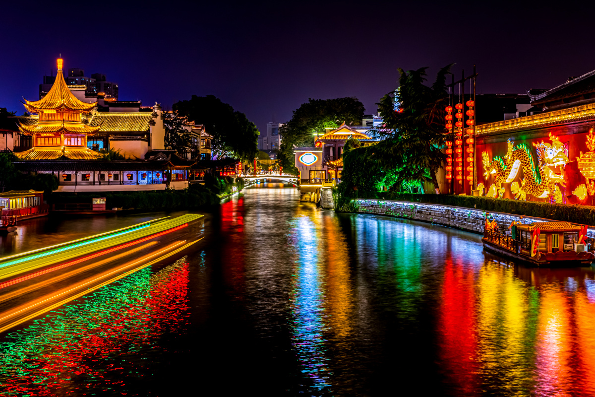 離開牛首山,我們前往充滿老南京風(fēng)情的老門東歷史文化街區(qū)。青石板路蜿蜒向前,兩側(cè)是白墻黛瓦的明清風(fēng)格建筑,濃郁的市井氣息撲面而來。大家或在 “老門東” 牌坊下合影留念,或走進(jìn)沿街店鋪品嘗各類南京美食。晚餐后我們來到了夫子廟 - 秦淮風(fēng)光帶。此時(shí)的秦淮河畔早已華燈初上,岸邊的古建筑掛滿了紅燈籠,燈光倒映在河水中,波光粼粼,美不勝收。我們沿著秦淮河畔漫步,看畫舫緩緩駛過,晚風(fēng)吹拂,愜意十足。街邊的小吃攤前人頭攢動(dòng),糖芋苗、赤豆元宵的香甜氣息縈繞鼻尖,大家三三兩兩分享美食,歡聲笑語(yǔ)回蕩在秦淮河畔。